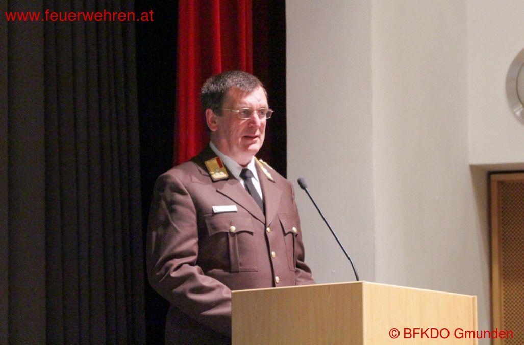 Oberbrandrat Stefan Schiendorfer konnte 144 Mitglieder und Funktionäre aus den Feuerwehren des Abschnittes Bad Ischl und Ehrengäste, an der Spitze den Bürgermeister der Marktgemeinde St. Wolfgang LA Johannes Peinsteiner, den Vize-Bürgermeister Josef Kogler, Hofrat Mag. Martin Scheuba, AbtInsp. Greunz Siegfried, Ehren-Abschnittsfeuerwehrkommandant E-BR August Bankhammer, BR Christian Huemer und die Mitarbeiter des Bezirks- und Abschnittsfeuerwehrkommando-Stabes, begrüßen.
