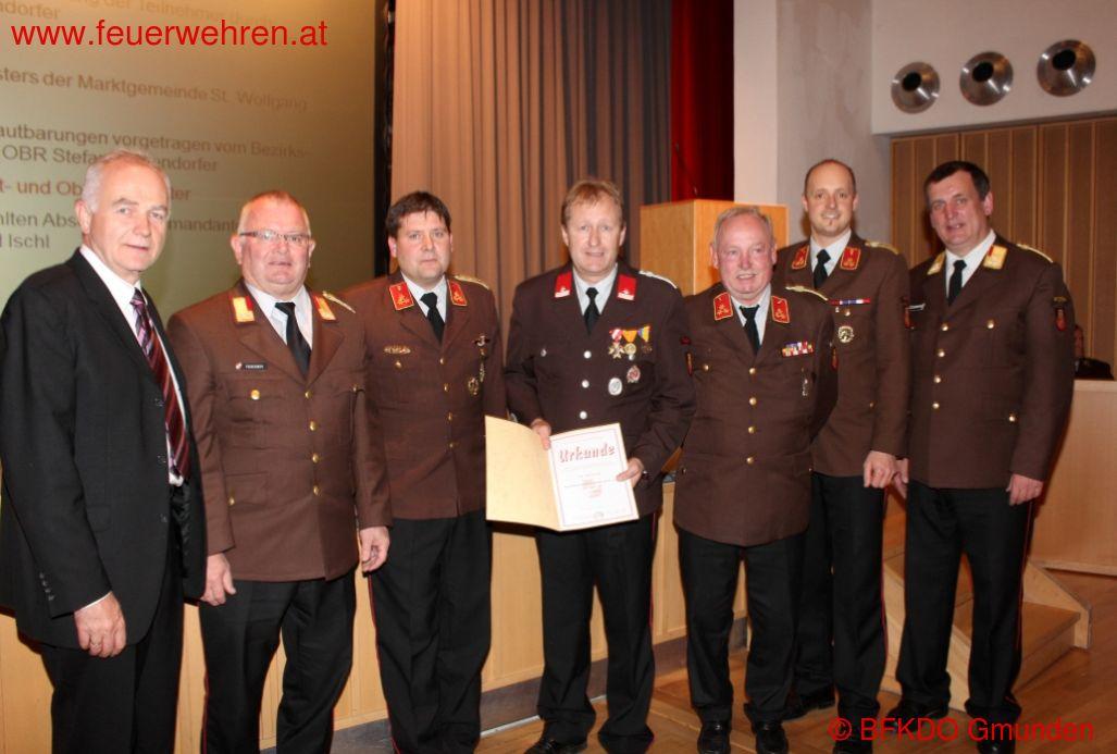 Der Feuerwehrreferent der Marktgemeinde St. Wolfgang, LM Franz Baier wurde mit der Bezirksmedaille in Bronze ausgezeichnet.