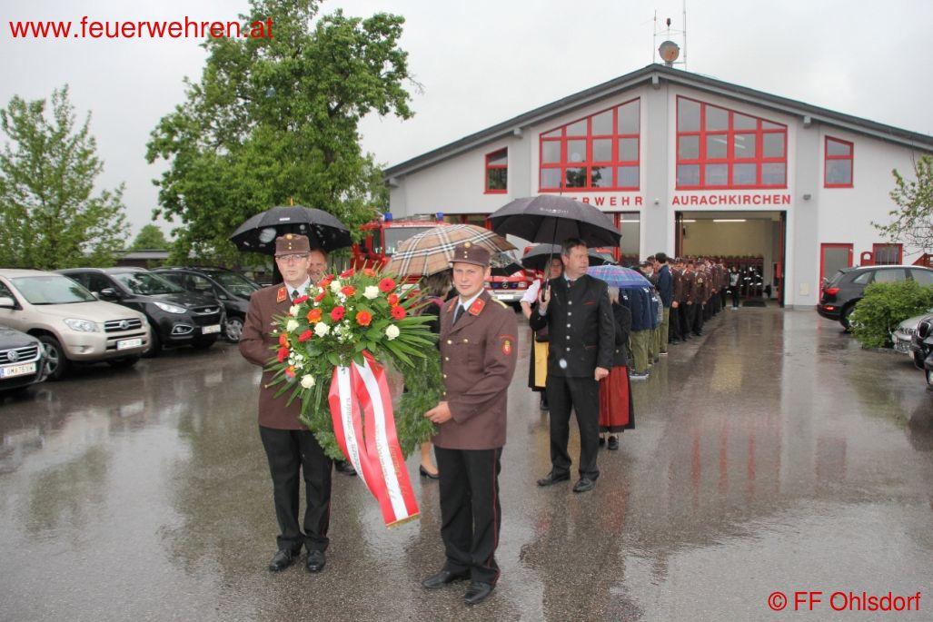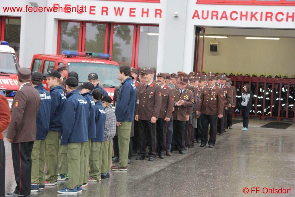 Rund 60 Kameraden und Kameradinnen der Feuerwehren Ohlsdorf und Aurachkirchen, zahlreiche Ehrengäste darunter die Gemeindeführung unter Frau Bgm. Eisner Christine trafen sich am Samstag, den 3. Mai 2014 in Aurachkirchen um gemeinsam den Schutzpatron der Feuerwehr, den Heiligen Florian zu feiern.