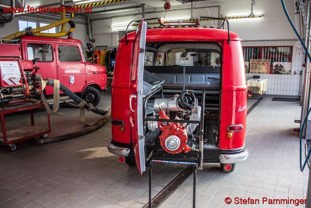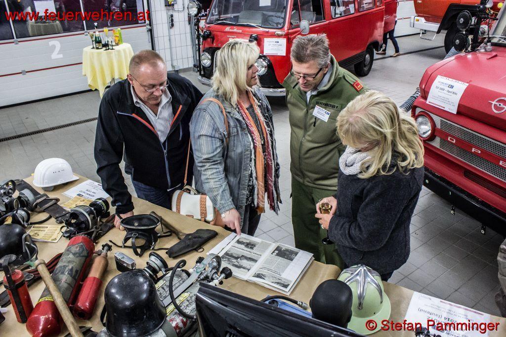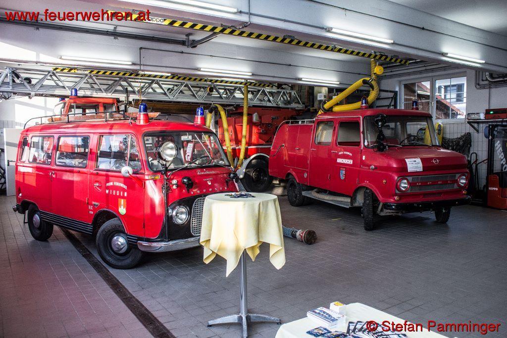 Um bei der Langen Nacht mehr bieten zu können, wurde versucht den Platz im Gerätehaus bestmöglich zu nutzen. So wurde nicht lange überlegt und Nachbarfeuerwehren gebeten ihre alten Fahrzeuge zu präsentieren. So wurden von der FF Wiesen ein LLF und von der FF Altmünster die Drehleiter, welche noch bis vor zwei Wochen im Dienst stand nach Ohlsdorf geholt. Von unserer zweiten Gemeinde Feuerwehr, der FF Aurachkirchen erhielten wir bereits im Vorfeld einen Opel Blitz TLF 1000. Dieses Fahrzeug war sogar einmal im Besitz der Feuerwehr Ohlsdorf und wurde nach dem Ankauf eines größeren ausgetauscht. Dieser Opel Blitz war der erste Tankwagen in der Gemeinde Ohlsdorf in der Zeit von 1968 bis 1976.