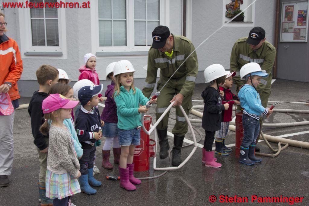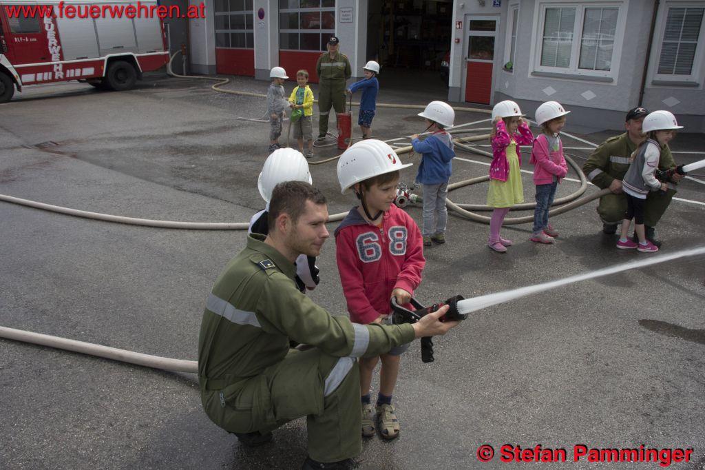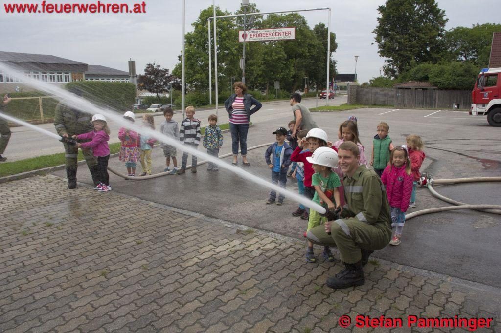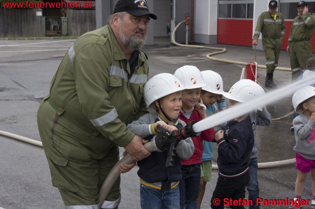 „Gruppenweise fuhren wir mit den Kindern eine Runde mit den Feuerwehrfahrzeugen und das Liebste, das Wasserspritzen mit dem Strahlrohr durfte natürlich auch nicht fehlen“, so Hauptamtswalter Stefan Pamminger, der jede Gruppe begrüßte.