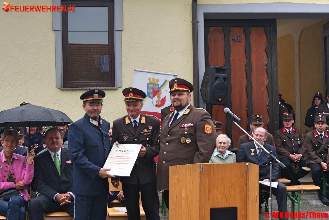 Auch Bezirkshauptmannschafts-Jurist Mag. Josef Pinkl betonte die Wichtigkeit des Nachwuchses im Feuerwehrwesen und stellte fest, dass der freiwillige Dienst für Jugendliche heutzutage keine Selbstverständlichkeit mehr ist. Einen neuen Weg die Jugend zu erreichen hat das Abschnittsfeuerwehrkommando dabei mit seiner neuen Facebookseite, erreichbar unter https://www.facebook.com/AfkRaabsThaya/, eingeschlagen.