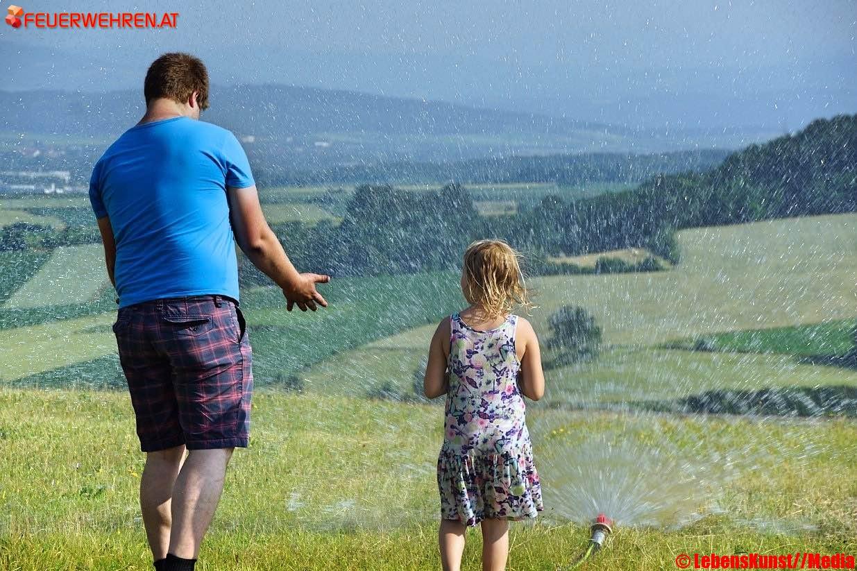 Es gab auch eine Feuerwehr-Malstation und ein Feuerwehr-Memory. Im Anschluss hatten sich alle das Picknick verdient und die Kameraden der Feuerwehr wurde dankenswerter Weise vom Kindergartenteam verköstigt. Beim gemeinsamen Abschluss bedankte sich Kindergartenleiterin Uschi Marbach bei allen Kindern, den Feuerwehrmännern und den freiwilligen Helfern mit einem Geschenk. Die Schulanfänger überreichten dem Kindergarten einen Apfelbaum als Abschiedsgeschenk. Als Höhepunkt für die Kinder, den Eltern und das Kindergartenteam gab es den Temperaturen entsprechend noch eine ausgedehnte Wasserschlacht.