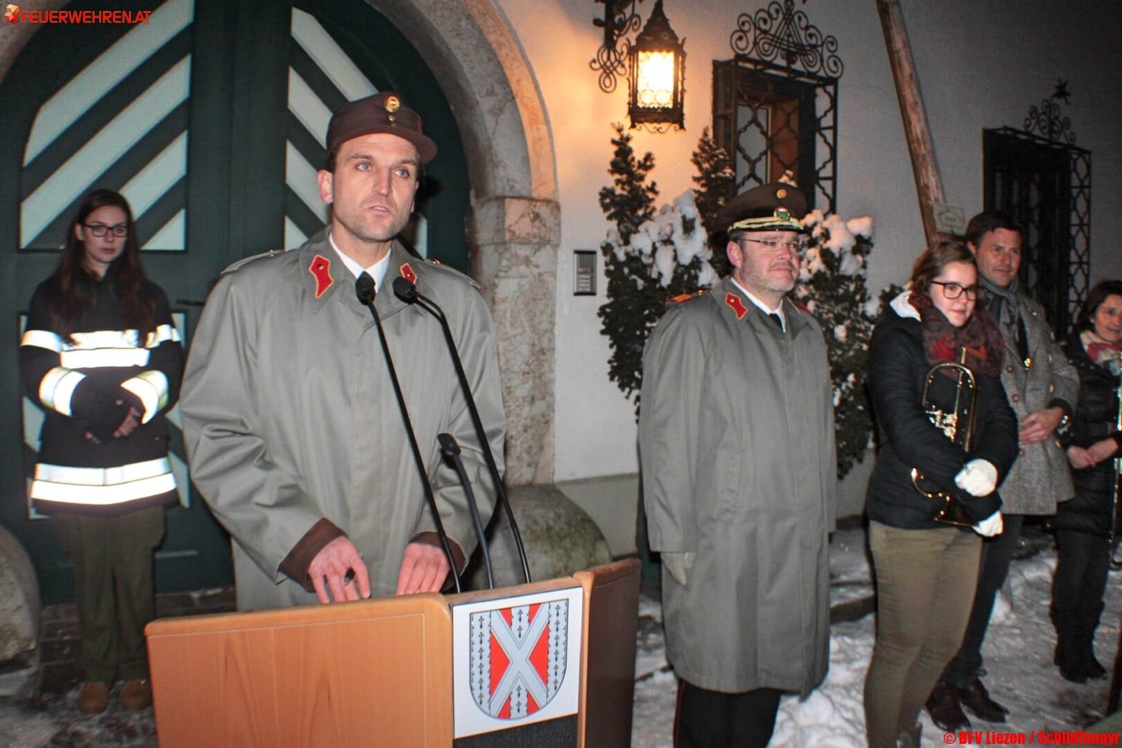 Sehr festlich musikalisch umrahmt wurde der Abend von einem Bläserquartett. Ein Weihnachtsgedicht von Paula Grogger „Hirtenlied“ wurde vorgetragen von den Jungflorianis Felix Zamberger und Alisa Grundner.