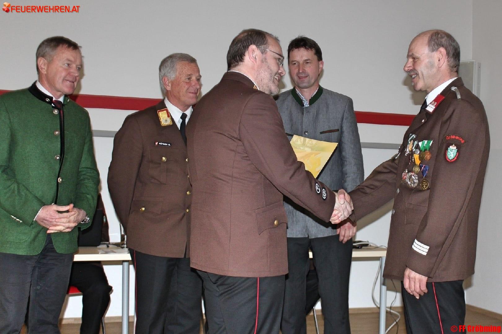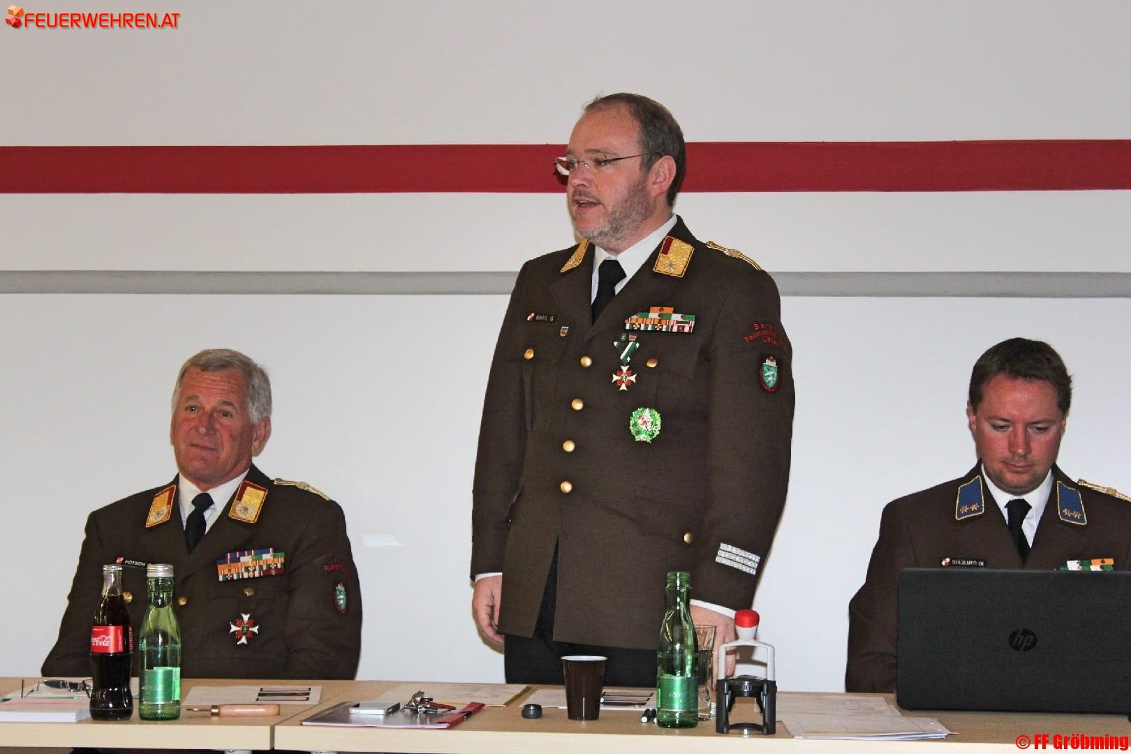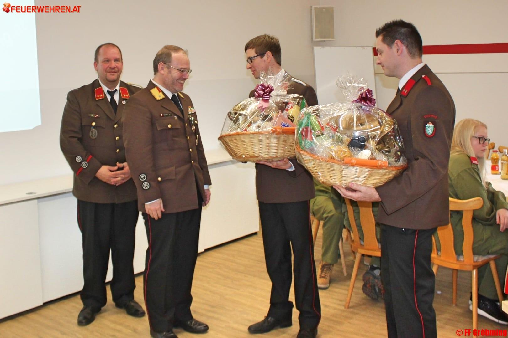 Zum neuen Kommandanten wurde HBI Hannes Nussmayr gewählt, dessen Vater Peter Nussmayr übrigens Ortsstellenleiter des benachbarten Roten Kreuz ist; zum neuen OBI wurde Markus Lerchegger gewählt. Als „erste Tat“ übergaben die Neugewählten ihren Vorgängern einen üppigen Geschenkskorb. Den Wahlvorsitz führte Bereichskommandant LBDS Gerhard Pötsch persönlich, als Ehrengäste wohnten Bürgermeister HFM Alois Guggi, LAbg. Albert Royer und Peter Nussmayr dem historischen Ereignis bei.