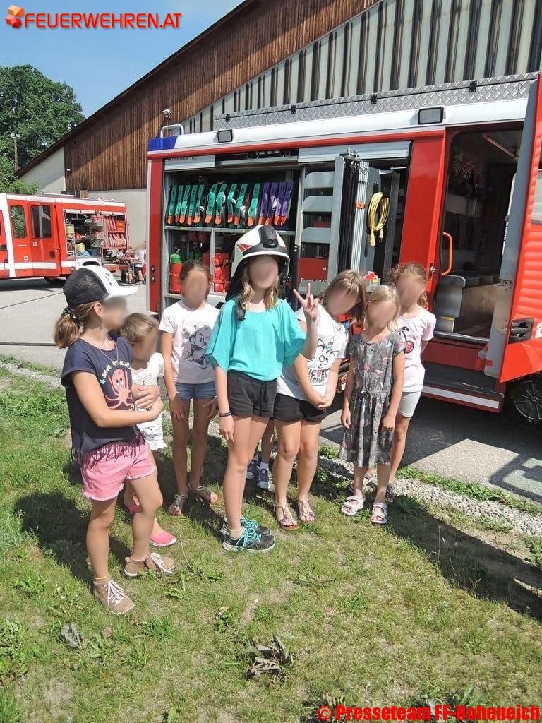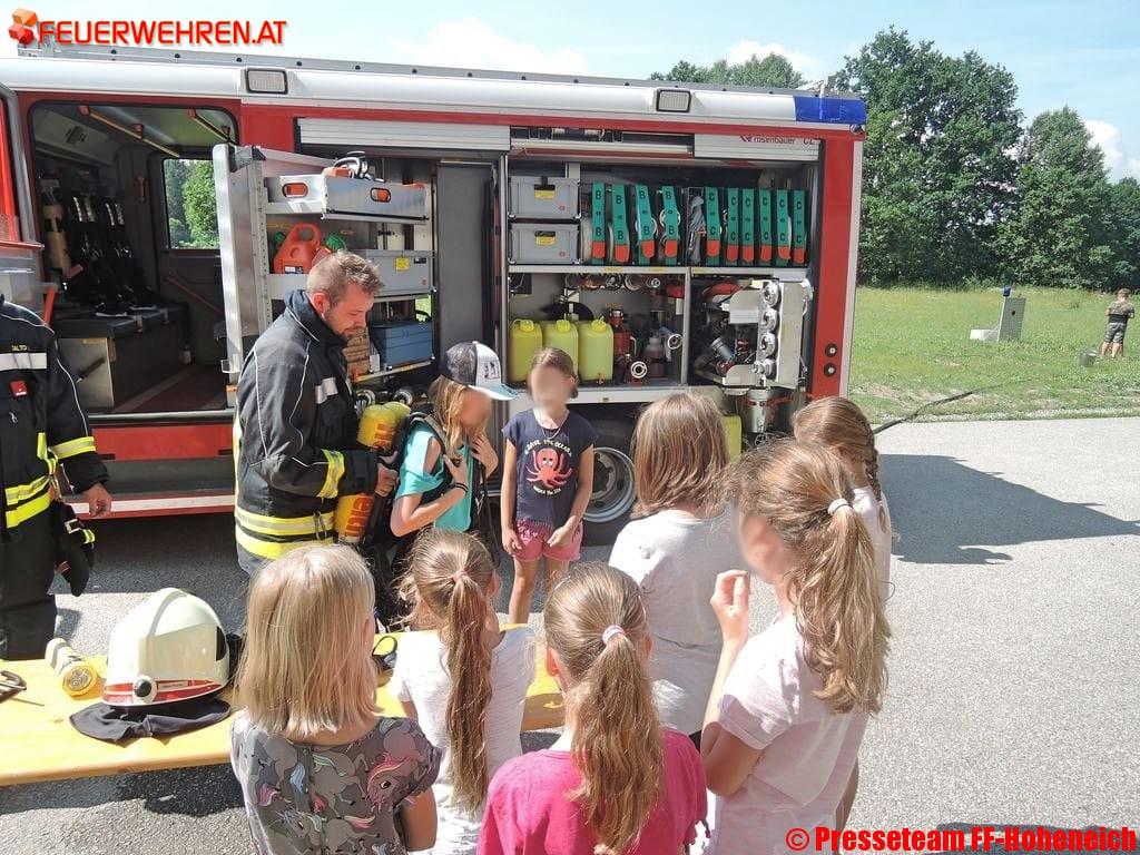 Im Rahmen der Aktion „Gemeinsam – Sicher – Feuerwehr“ besuchten die Feuerwehren der Gemeinde Hoheneich die örtliche Volksschule. Nach einem Vortrag der Floriani über die Aufgaben der Feuerwehr und der Tätigkeiten der Feuerwehrjugend folgte eine Besichtigung der Feuerwehrautos und der Gerätschaften.