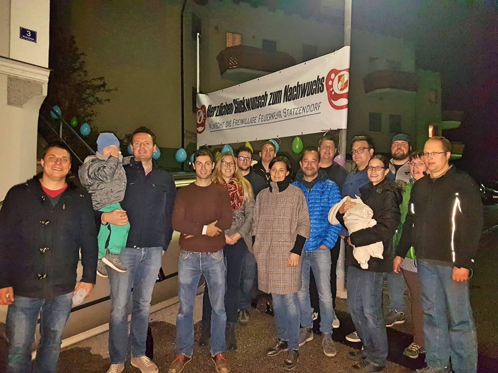 Ein weiterer Storch landete in der Kellergasse. Bei Paul Sterkl und seiner Viki erblickte vor kurzem Sohn Felix das Licht der Welt. Auch hier stellten sich die Kameraden der Freiwilligen Feuerwehr Statzendorf mit Glückwünschen ein.