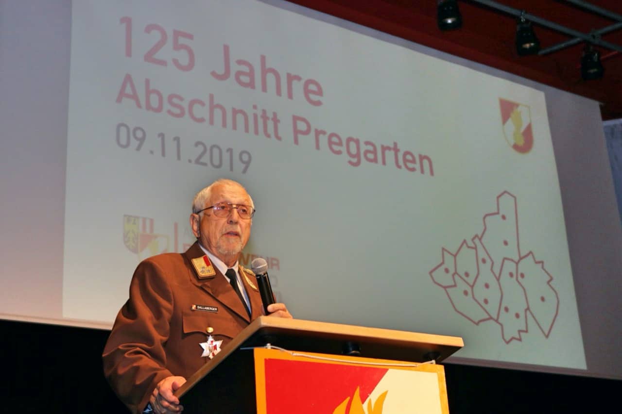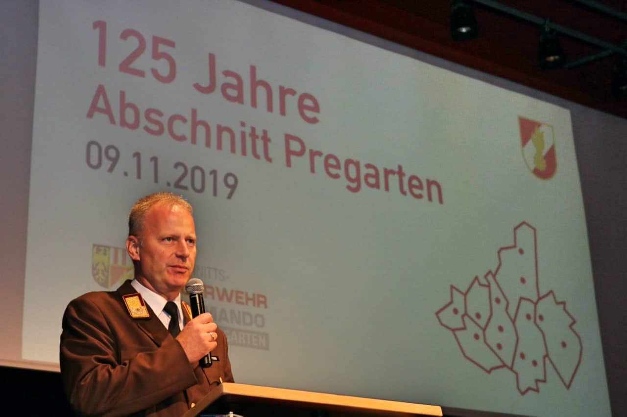 „Wer die Vergangenheit nicht kennt, kann die Gegenwart nicht verstehen und die Zukunft nicht gestalten“ – mit diesen Worten eröffnete Abschnittsfeuerwehrkommandant Harald Dobusch den Festakt anlässlich “125 Jahre Feuerwehrabschnitt Pregarten “ in der Bruckmühle Pregarten. Zahlreiche Mitglieder der 13 Feuerwehren aus dem Abschnitt, Feuerwehrfunktionäre, Ehrengäste aus Politik und den Einsatzorganisationen waren der Einladung zur Jubiläumsfeier gefolgt.