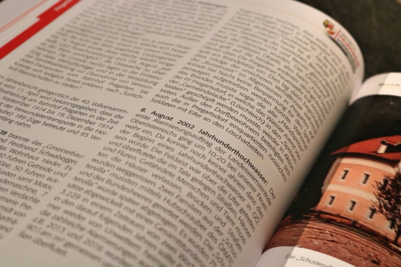Ein 18-köpfiges Team unter der Leitung von Alois Adlesgruber hatte es sich in den letzten drei Jahre zur Aufgabe gemacht, die bewegte Geschichte „ihrer“ Feuerwehren zu Papier zu bringen. Über 800 Arbeitsstunden wurden in die 175 Seiten umfassende Chronik investiert, die „Geschichtsprofessor“ Johann Sallaberger beim Festakt auszugsweise präsentieren durfte. Ein beeindruckendes Werk, in dem die Leistungen und die Geschichte jeder einzelnen Feuerwehr detailreich dokumentiert ist.