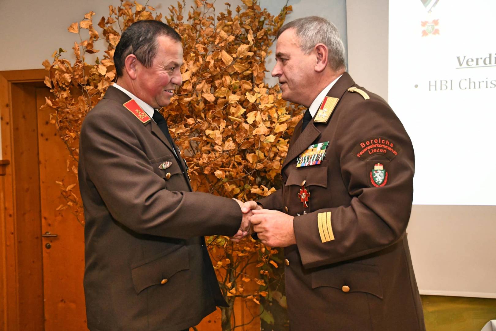 Seit vielen Jahren findet der Kommandantentag des Bereichsfeuerwehrverbandes Liezen, aufgrund seiner zentralen Lage im Bezirk, im Gasthof Kirchenwirt in Aigen statt. Gastgeber Raimund Hager, seit 20 Jahren Bürgermeister von Aigen im Ennstal, erhielt gestern aus den Händen von Oberbrandrat Heinz Hartl eine der höchsten Auszeichnungen des Österreichischen Bundesfeuerwehrverbandes: die Florianiplakette in Bronze. Er bedankte sich für die hohe Auszeichnung und überbrachte den Dank, stellvertretend für alle Bürgermeister der Region, für dieses wichtige Ehrenamt an alle Funktionsträger.