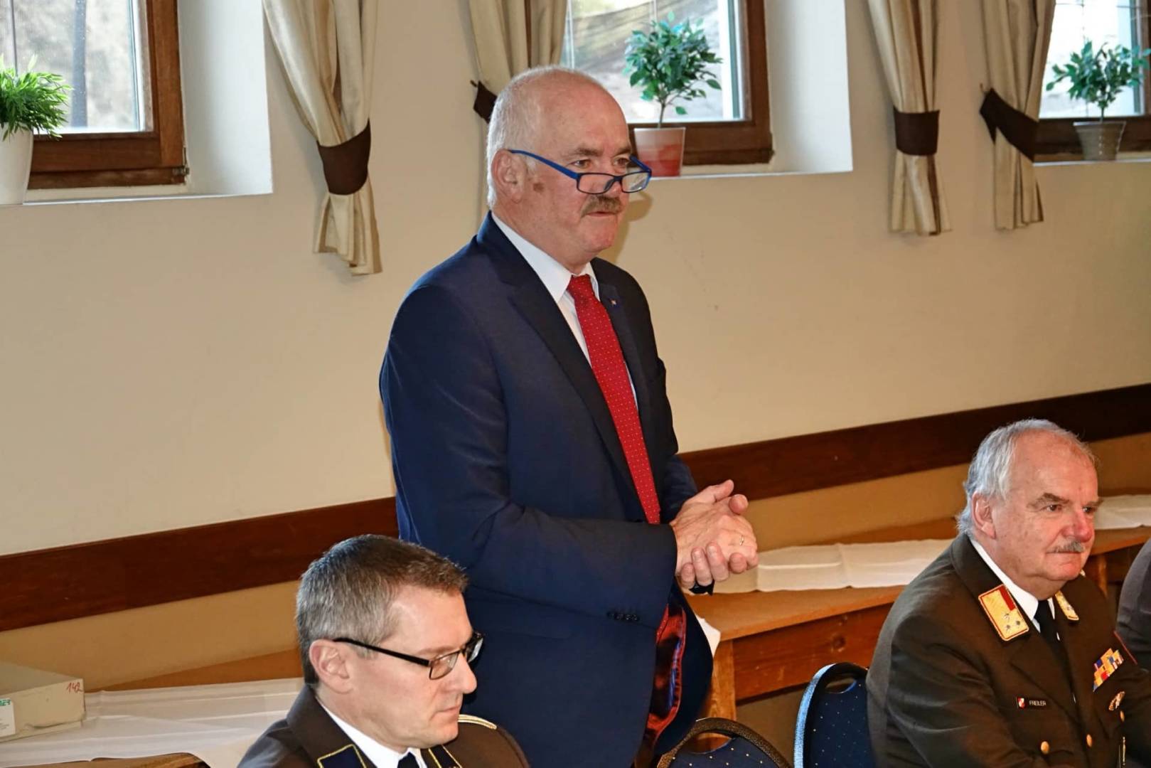 Für die verdienstvolle Tätigkeit im Rahmen des Feuerwehrwesen wird in Anwesenheit von BGM Freiler gratuliert: