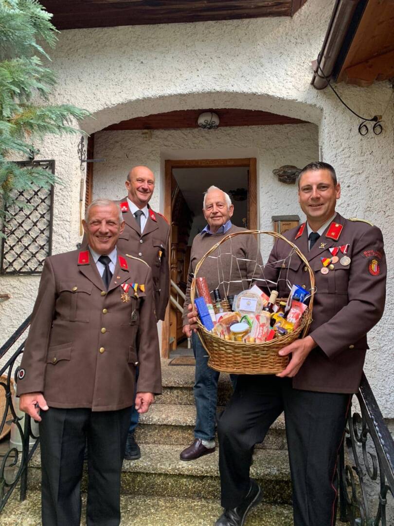 FM Leopold Schiendorfer von der Feuerwache Perneck feierte seinen 80. Geburtstag. Natürlich ließen es sich seine Kameraden nicht nehmen, ihm zu diesem Runden zu gratulieren. Deshalb besuchte ihn eine kleine Abordnung.