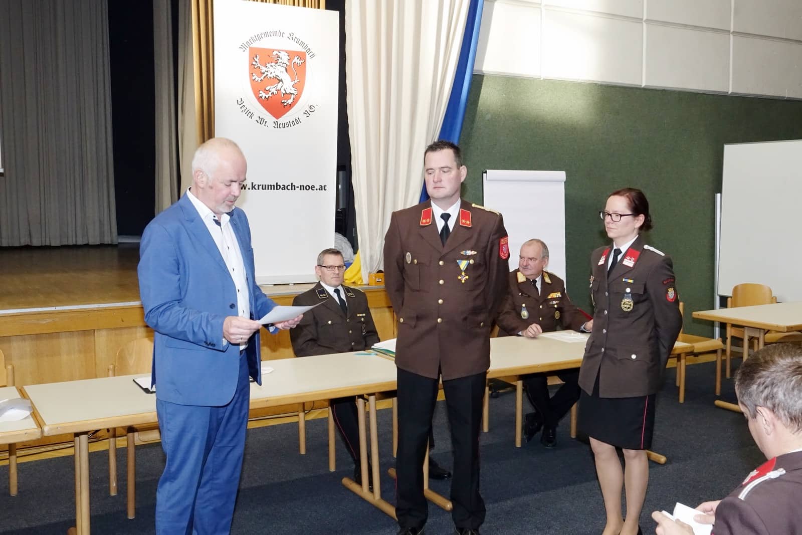 Der neu gewählte Kommandant Jürgen Simon dankte dem scheidenden Kommandanten Rudolf Freiler für seine Leistung für die FF Krumbach. Ebenfalls bedankte er sich bei dem scheidenden Leiter des Verwaltungsdienstes Reinhard Heißenberger und dessen Stellvertreter Günter Heißenberger. Als neuer Leiter des Verwaltungsdienstes wurde Dieter Eidler und als dessen Stellvertreter Gerald Steurer-Pernsteiner bestellt.