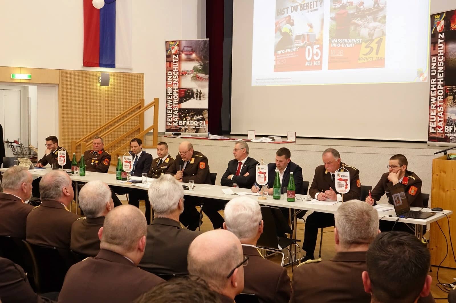 Nach den Grußworten von BGM Karnthaler gab es einen Rückblick von BFKDT Greiner über die Einsatzschwerpunkte und Schulungen des Jahres 2021 im Feuerwehrbezirk Wr. Neustadt.