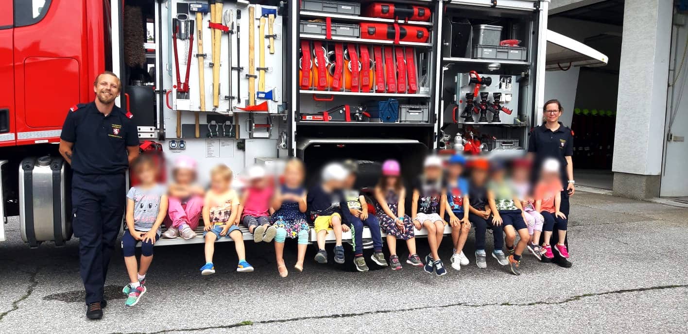 Rund 2 Stunden konnten die Kinder mit großen Augen die Geräte und die Fahrzeuge der FF Krumbach erleben. Das Team der FF Krumbach unter Kommandant Stellvertreter Barbara Freiler sagt Danke für den Besuch.