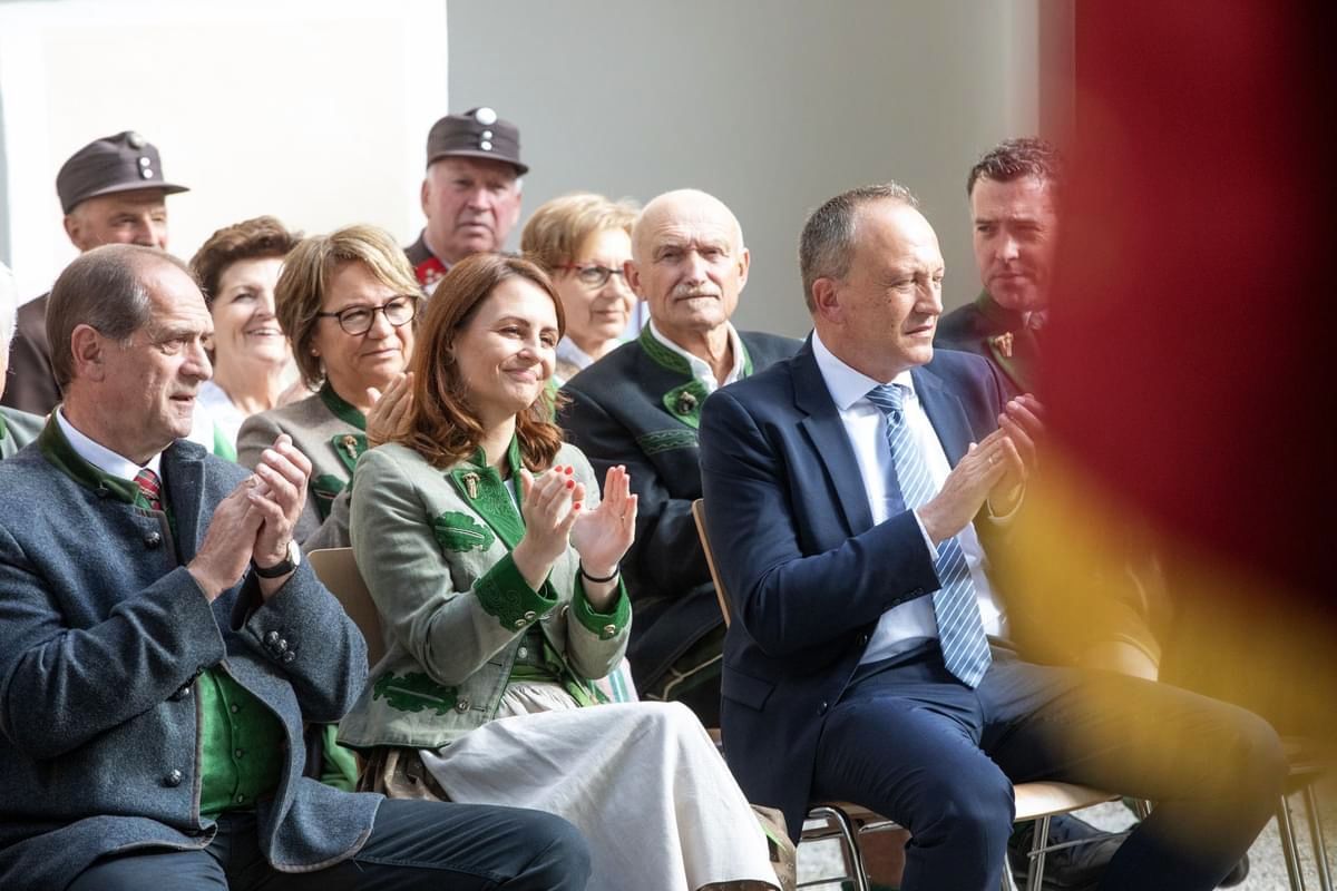 HBI Singer Gerhard, Kommandant der FF Donnersbach, konnte zahlreich erschienene Ehrengäste wie Pfarrer Adrian Aileni und Abgeordnete zum Nationalrat Corinna Scharzenberger sowie den Landtagsabgeordneten Armin Forstner und Bezirkshauptmann Mag. Nico Groger begrüßen. Der Einladung waren auch Hausherr BGM Herbert Gugganig mit Vorstand und Gemeinderäten sowie der Bürgermeister der Gemeinde Aigen, Thomas Klingler gefolgt.