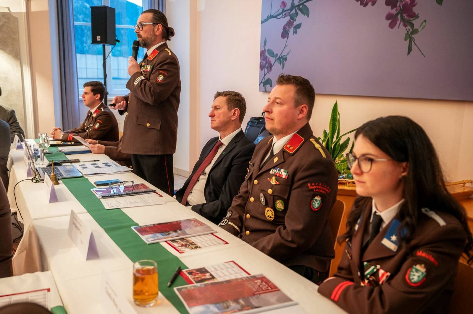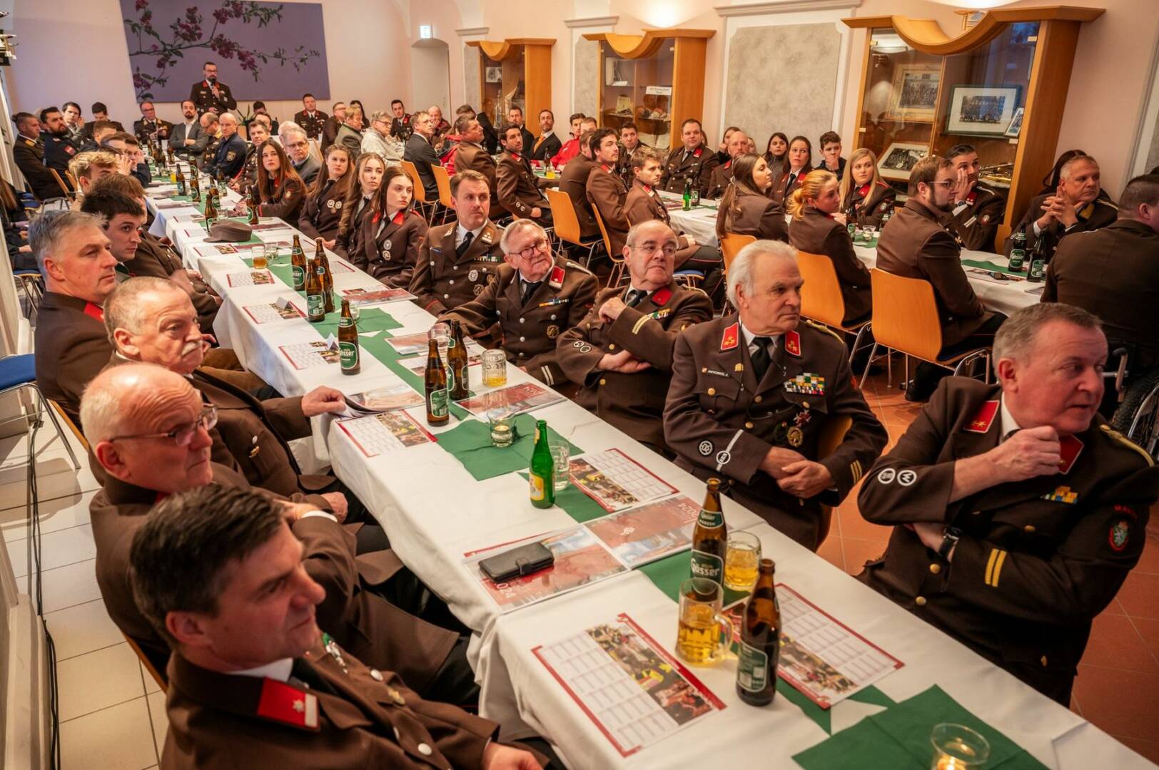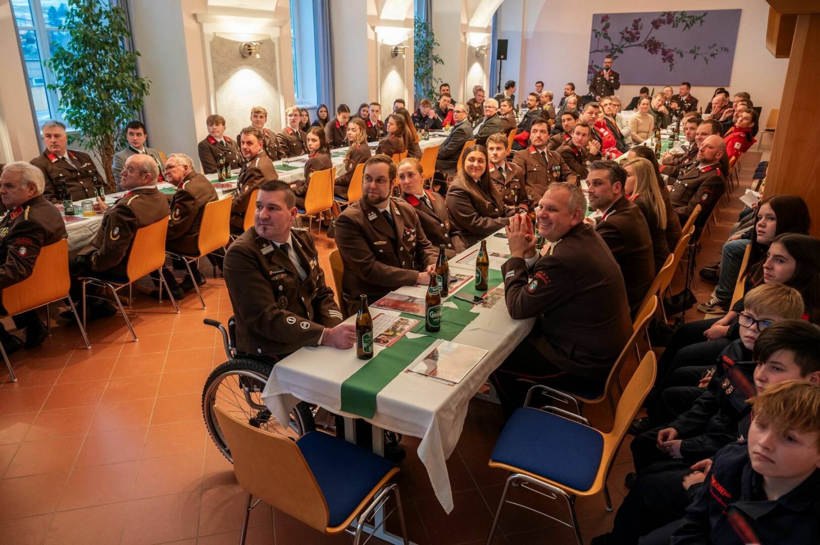 Im bis auf den letzten Platz gefüllten Gemeindesaal durften Kommandant HBI Christian Lanzmaier und Kommandant-Stv. OBI Wolfgang Hirt neben ihren Kameradinnen und Kameraden der Feuerwehr Mautern zahlreiche Ehrengäste, darunter Bürgermeister Andreas Kühberger Abg. z. NR sowie Vizebürgermeister Franz Lerchbaum mit den Gemeinderäten Dr. Sybilla Schmid, GK Hansjörg Götzfried, Christoph Litscher, Walfried Leitold und Peter Stangl begrüßen. Seitens der BH Leoben konnten Bezirkshauptmann Mag. Markus Kraxner und Referatsleiter Mag. Marcel Kerschbaumer sowie vom Land Steiermark Dipl. Ing. Oberbaurat Ulrich Wohlmuther und Landesgeologe Mag. Michael Konrad begrüßt werden. Vom Bereichsfeuerwehrverband Leoben nahmen OBR Johann Diethart, ABI Hanspeter Moder und ABI Jürgen Sapelza sowie die Bereichssonderbeauftragten Antoniol Josef, Friedmann Peter, Götzfried Hansjörg und Riemelmoser Stefan an der Veranstaltung teil. Auch Abordnungen der Bergrettung, dem Roten Kreuz, der Ortsmusikkapelle und der Polizei Mautern konnten begrüßt werden. Neben den Ehrenmitgliedern Peter Hölzl und Peter Weber war auch Pfarrer Pater Egon Homann anwesend.
