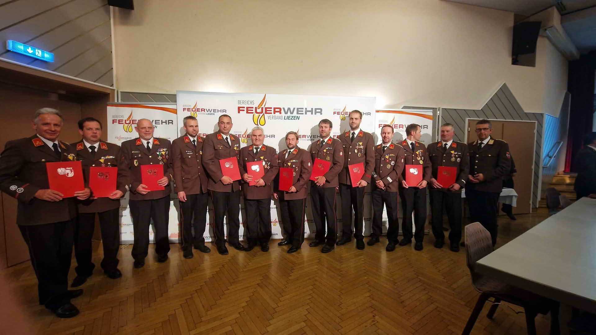 Das Verdienstzeichen des ÖBFV 3. Stufe den folgenden HBI´s: Martin Bacher, Helfried Baumann, Markus Draxler, Angelo Egger, Hubert Fuxjäger, Jean Haslinger, Johann Hofer, Gernot Kettner, Georg Kraml, Michael Mitterbäck, Ferdinand Moser, Johannes Perner, Gernot Pfusterer, Christian Prettner und Gerhard Singer.