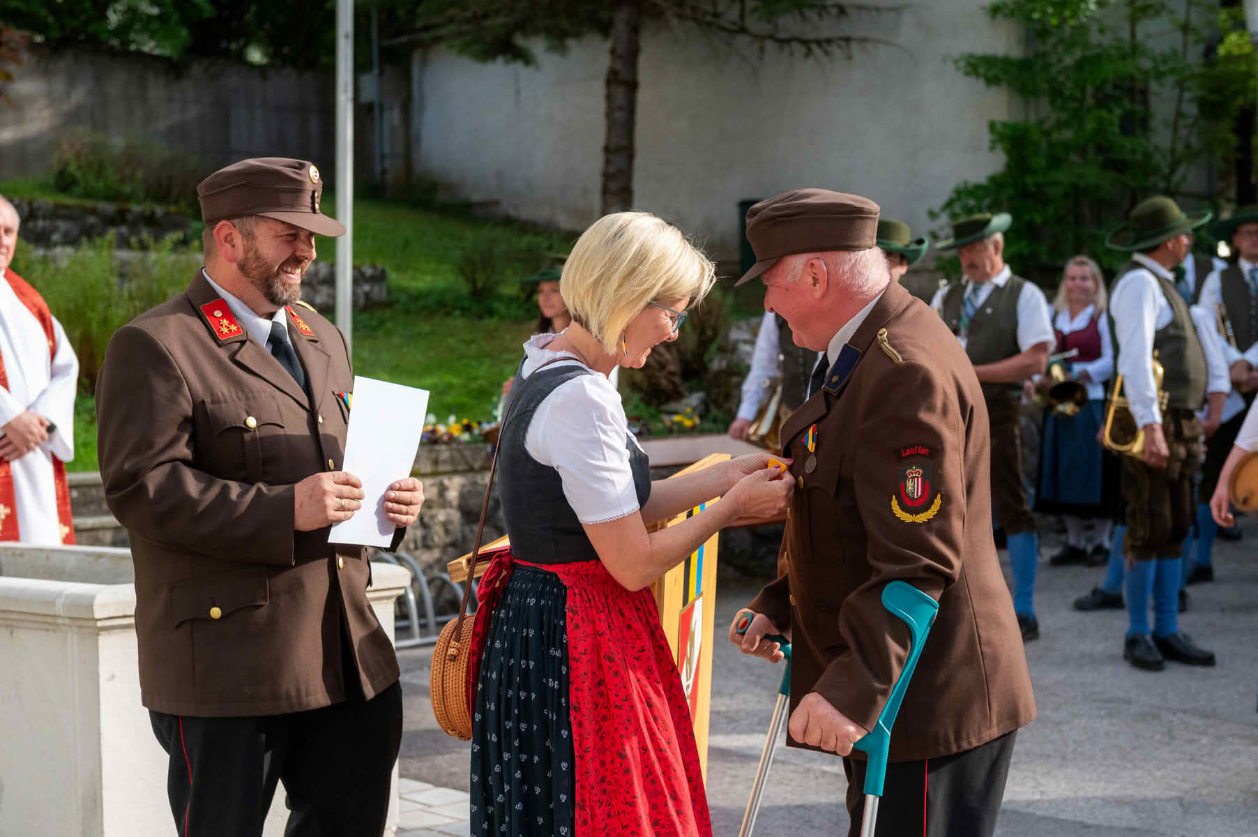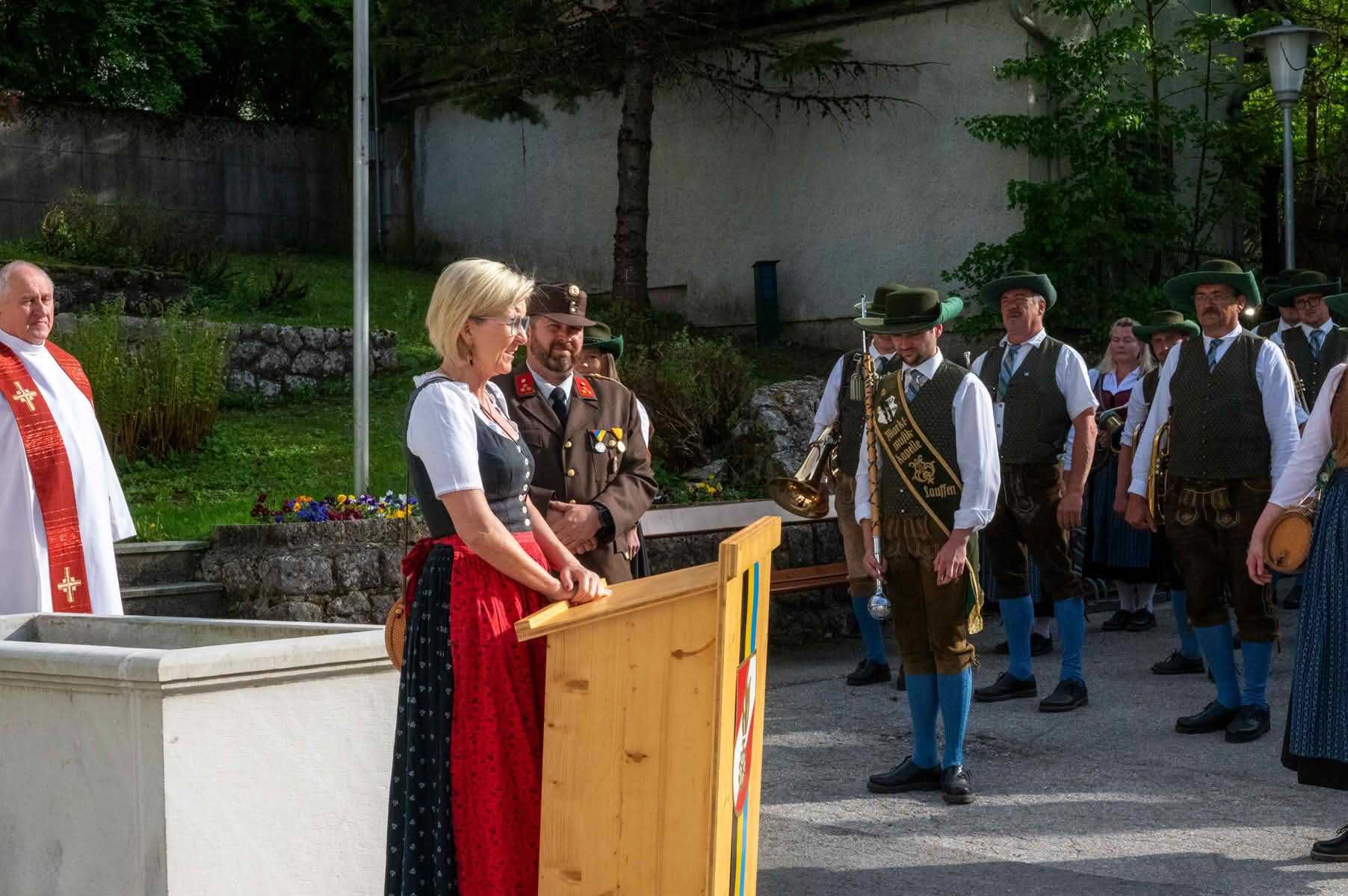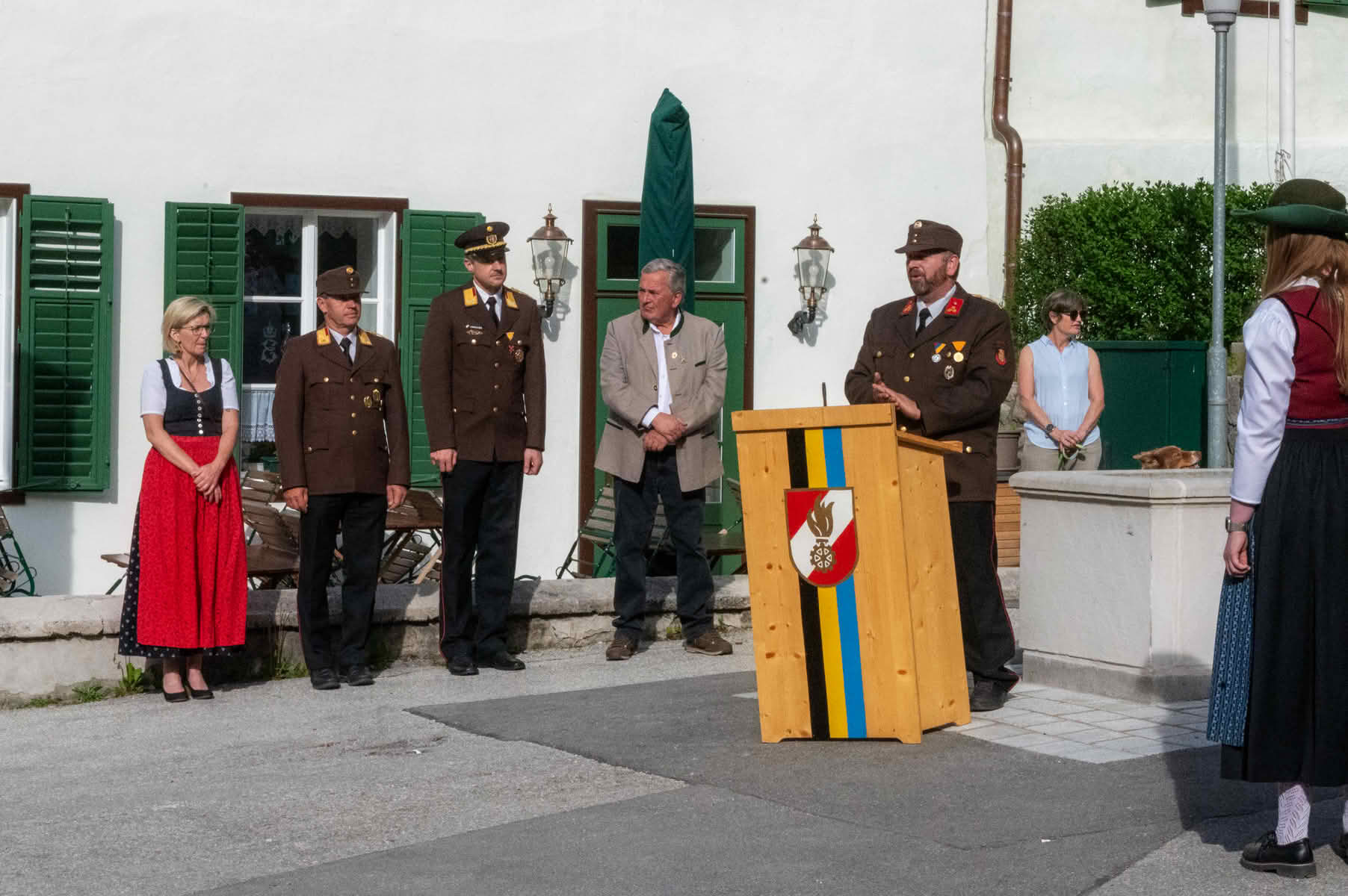 Nach dem Gottesdienst fanden am Kirchenvorplatz die Ansprachen der Ehrengäste statt. Kommandant HBI Florian Laimer durfte dabei folgende Persönlichkeiten begrüßen: