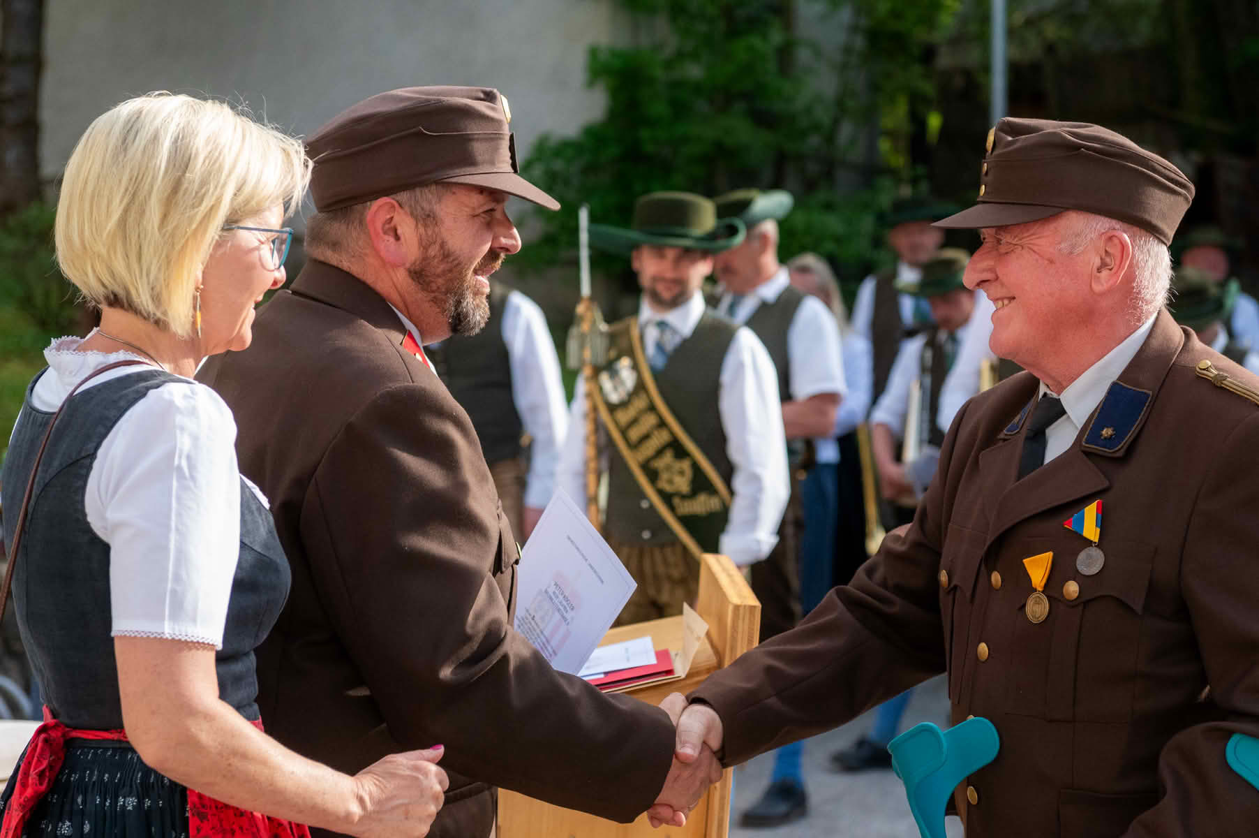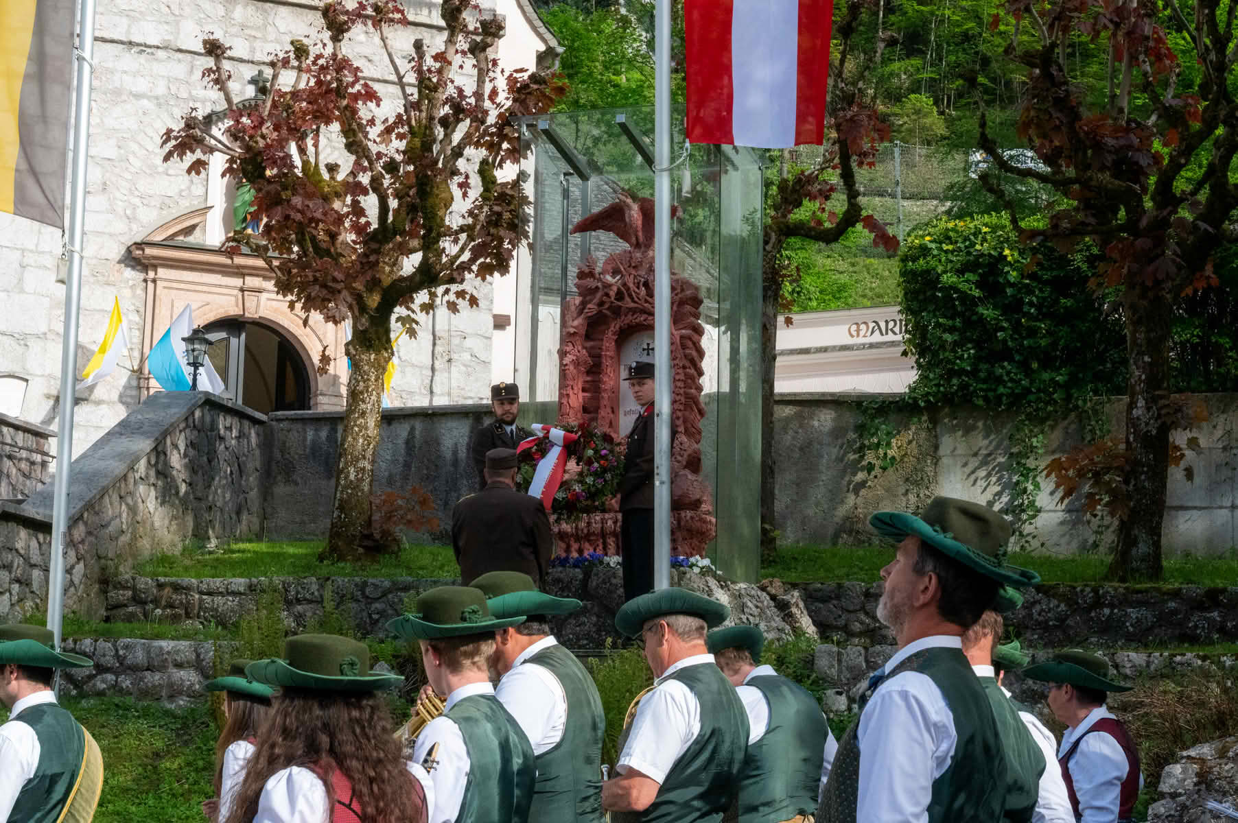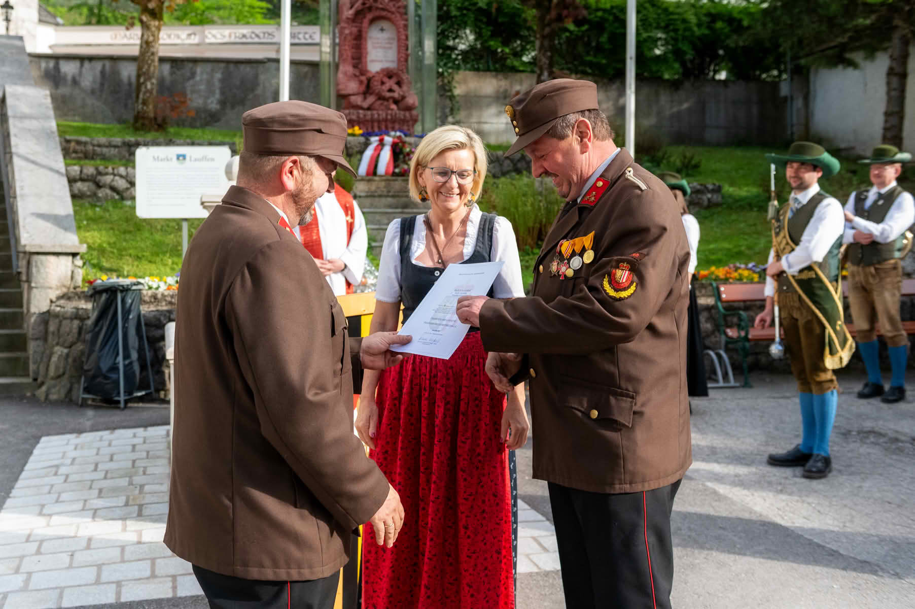 Nach dem Gottesdienst fanden am Kirchenvorplatz die Ansprachen der Ehrengäste statt. Kommandant HBI Florian Laimer durfte dabei folgende Persönlichkeiten begrüßen: