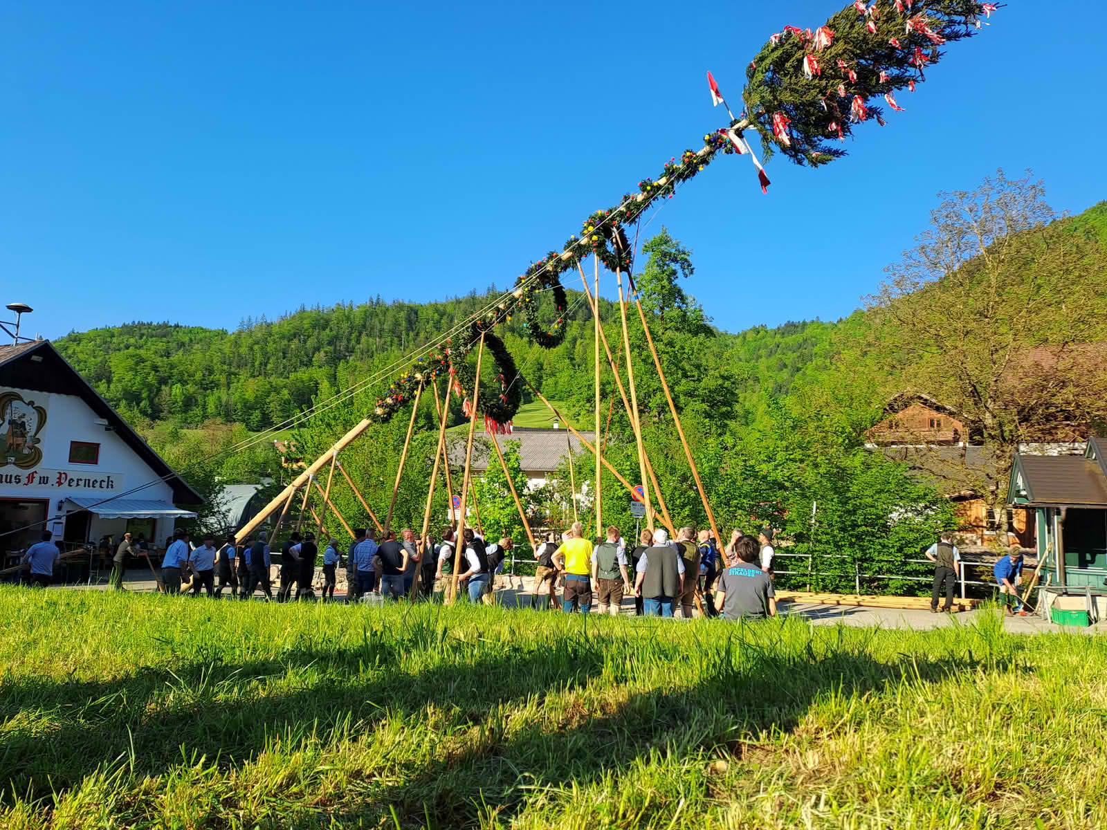 Bereits am frühen Morgen machte man sich auf und holte die bereits seit längerer Zeit ausgeschaute Fichte zum Pernecker Feuerwehrhaus herunter. Bis am Nachmittag waren die Arbeiten abgeschlossen, sodass das Maibaumaufstellen unter der Regie von Maibaumchef Thomas Gratzer beginnen konnte.