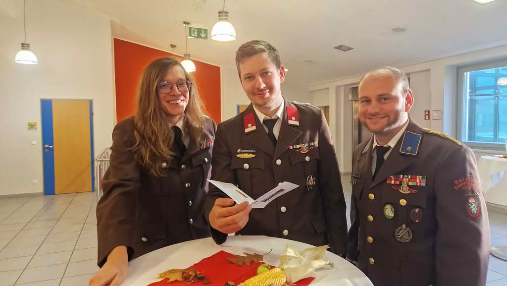 Befördert wurden HBI a.D. Gerhard Reiter zum BI d.F. sowie der Beauftragte für Foto und Medien BM d.V. Ronald Haider zum BI d.V.
