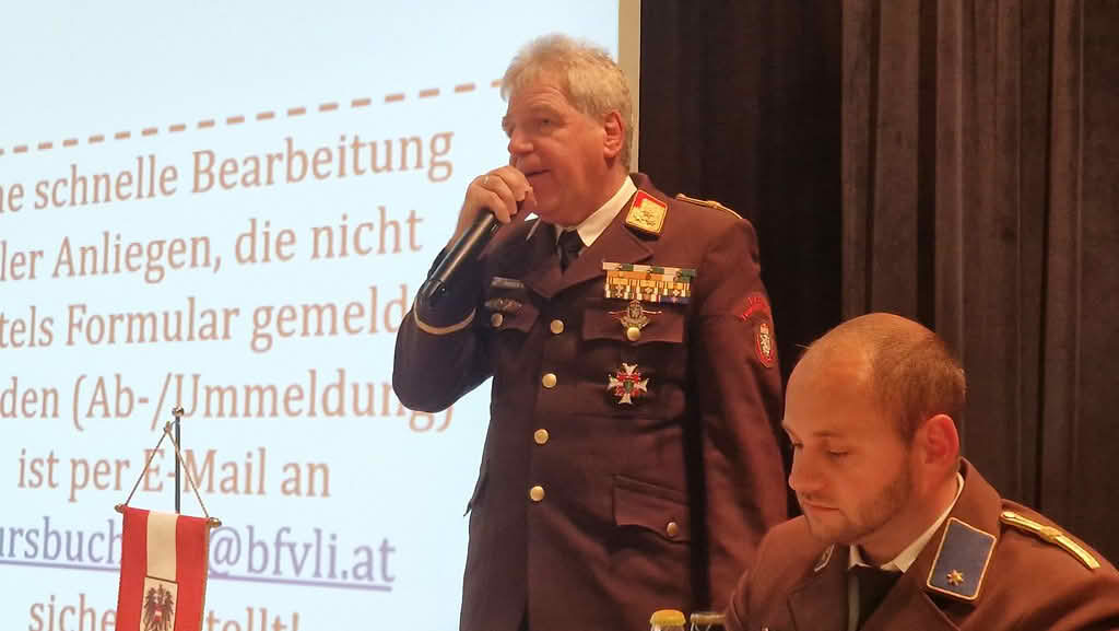 Das nächste Referat wurde von Schulleiter OBR d. LFV Gerhard Grain gehalten und hatte das Kursbuchungssystem der Landesfeuerwehr- und Zivilschutzschule Steiermark zum Inhalt. Als Neuerungen wurde hier das einfachere Buchungsprocedere, Neuerungen bei den Kursinhalten sowie Adaptierungen bei der Verwaltungssoftware FDISK vermittelt. Die größten Neuerungen bei den Kursinhalten betreffen die Bereiche Führung, Sanität, Jugendbeauftragte und die Waldbrandbekämpfung.